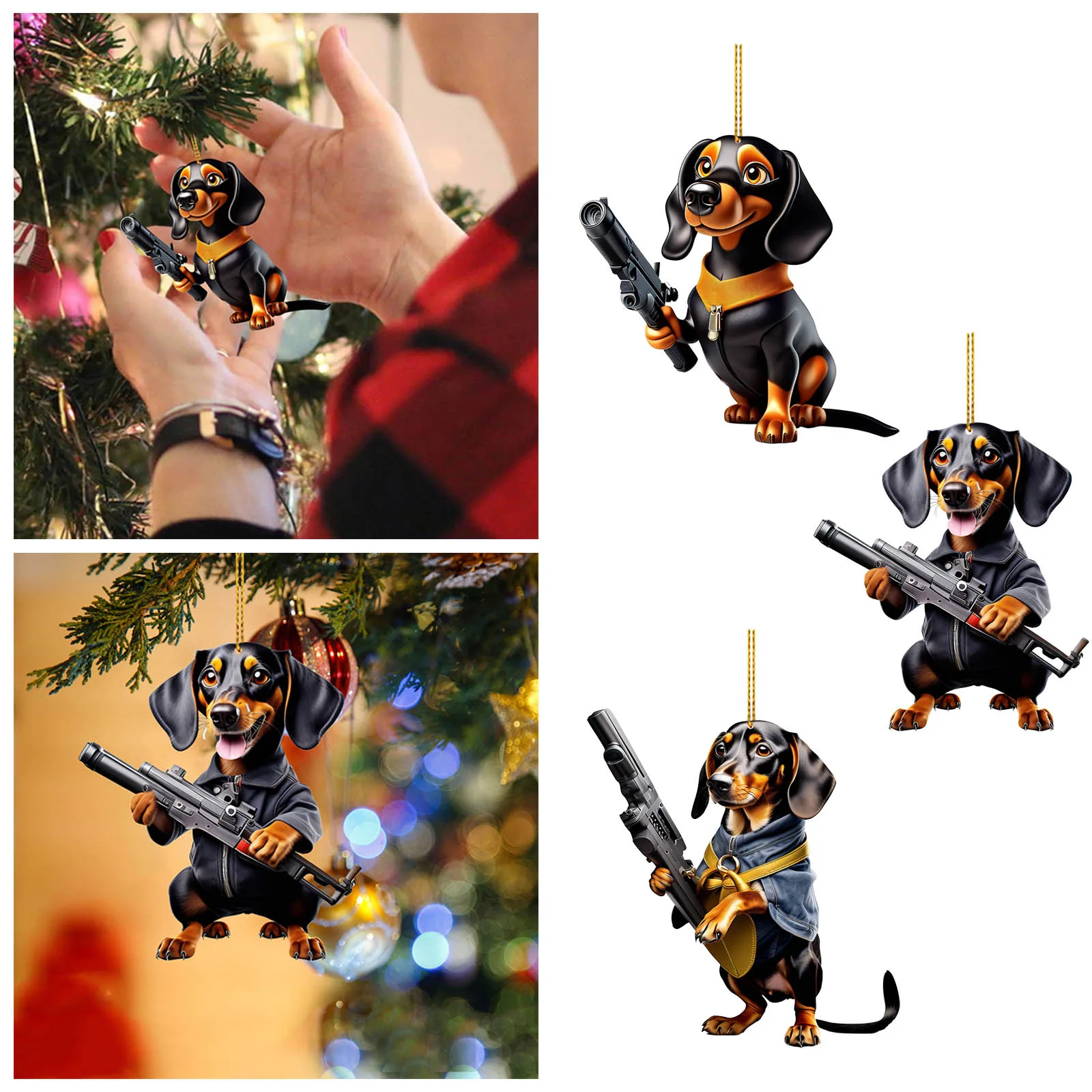 2D Acrylic Cartoon Creature Christmas Tree Pendant Christmas Cartoon Cute Creature Double Print 2D Gift Pendant 1 Piece Dog